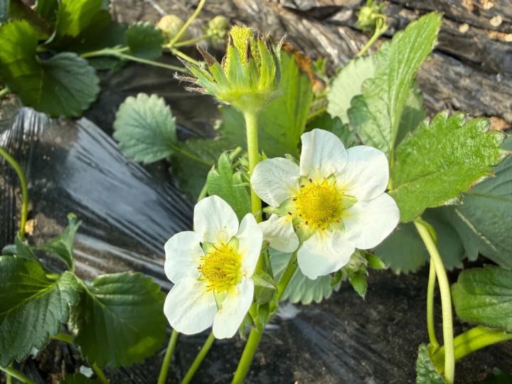 镜头一转,温室里还有另一群“明星员工”——蜜蜂。在草莓花间穿梭的蜜蜂,承担着最重要的任务:授粉。